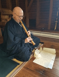 Suizen or “Blowing Zen” the practice of playing the shakuhachi, the root end bamboo flute, is one among many ways to express realization in the Soto Zen tradition. Other ways include: zazen (sitting meditation), kinhin (walking meditation). Suizen was traditionally practiced by the shakuhachi-playing mendicant Zen monks of the Fuke sect in Japan known as Komusō (Monks of Emptiness). They flourished during the Edo period (1600 to 1868). They occupy a meaningful part of the shakuhachi tradition, and their repertoire of meditative pieces, (honkyoku), and the shakuhachi‘s deep connection to Zen Buddhism are access points for many who are intrigued by the traditional Japanese bamboo flute and its culture. With suizen, the playing of the shakuhachi is at the core of the religious practice, making it unique in the world of Buddhism. It is the only melodic instrument found in Zen. Ichi on jo butsu, “Realization through a single note, became an important aspect of the Fuke sect’s ‘blowing Zen.’ The great shakuhachi master Fūyō Hisamatsu (1790- 1845) speaks of “going all the way with intellect and then going beyond intellect to realization.” The suizen repertoire or, Honkyoku, is distinguished from Gaikyoku, the music played for entertainment. Suizen pieces are traditionally played as a personal spiritual practice and not as a public performance. The program consists of a variety of pieces drawn from the traditional Zen repertoire. This event is an opportunity to join in and feel the meditative ambience of the sound of the shakuhachi. We look forward to you joining us for this special event.